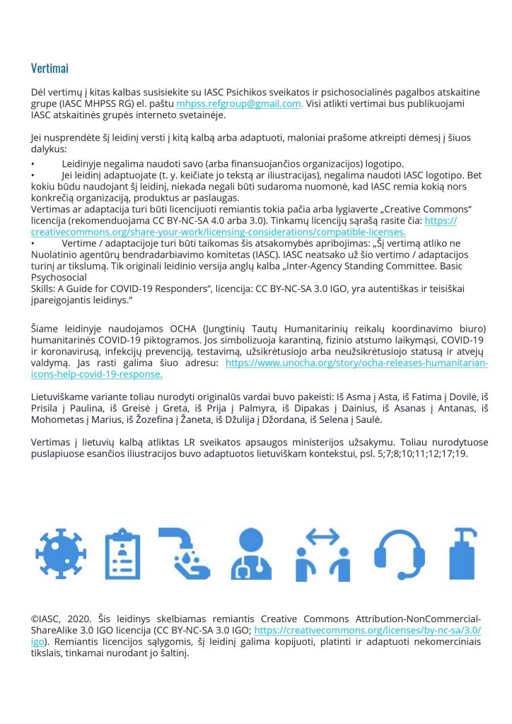 Parengta pagal „IASC Reference Group on MHPSS in Emergency Settings” “Mental health and psychosocial considerations during the COVID-19 outbreak“